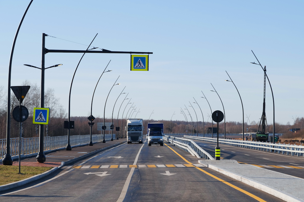 В ходе строительства объекта выполнен весь комплекс мероприятий по обеспечению безопасности дорожного движения: в зоне пешеходных переходов оборудованы перильные ограждения вдоль тротуаров, металлическое барьерное ограждение, сигнальные столбики, освещение, знаки, нанесена горизонтальная разметка и смонтированы искусственные неровности.